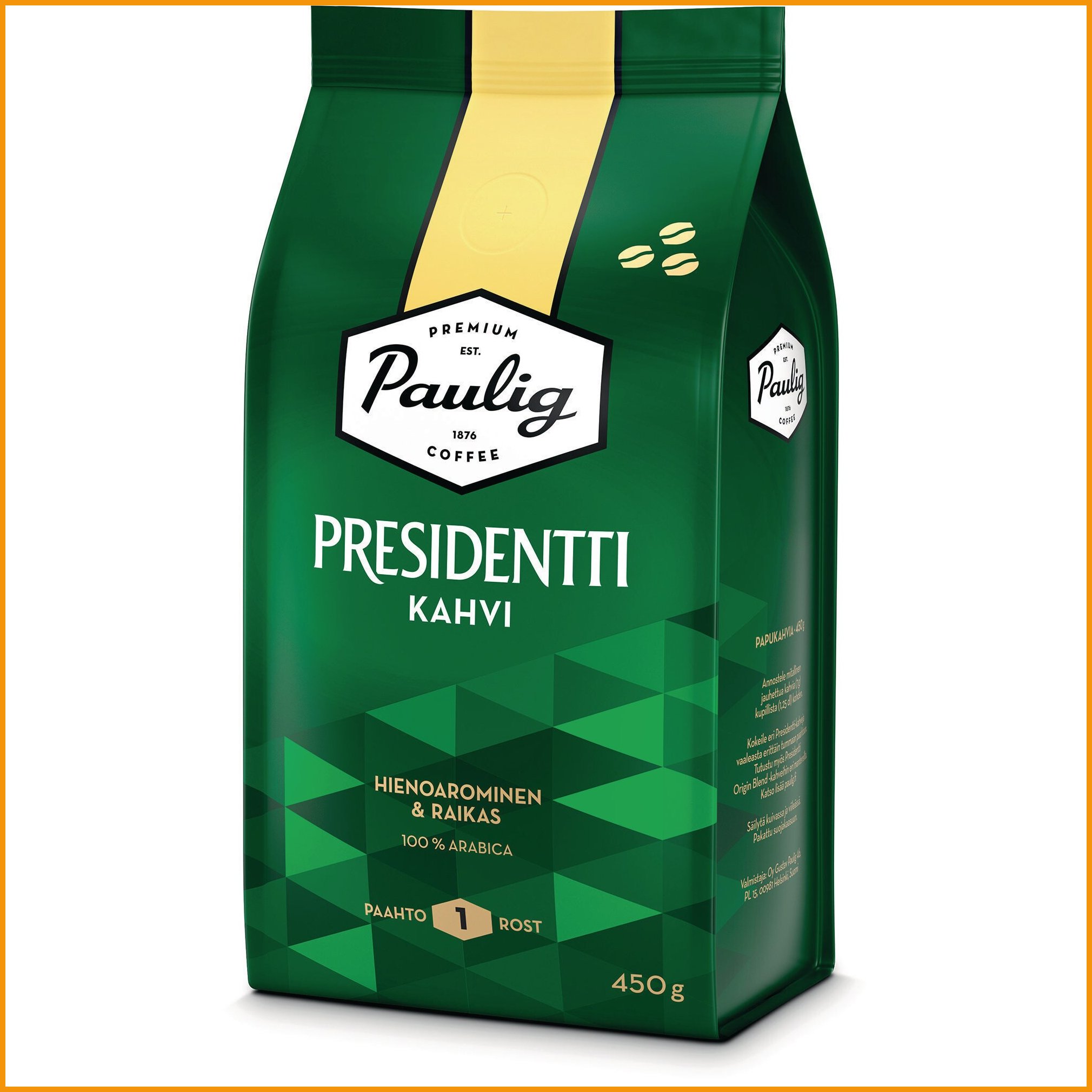Paulig presidentti kahvipapu vaalea paahto 450g tuotetiedot