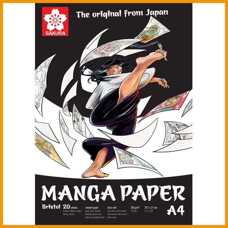 Sakuran Manga-sarjan korkealaatuisen piirustuslehtiön erittäin sileä ja pehmeä, bristol-tyyppinen paperi soveltuu erityisen hyvin tussitöihin. Happovapaa lehtiö on liimattu yhdestä reunastaan.Ympäristöystävällinen tuote on valmistettu FSC-sertifioidusta materiaalista.