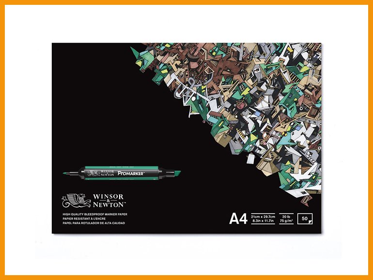 Winsor & Newtonin laadukkaan Bleedproof -piirustuslehtiön erityinen pinta estää värin vuotamisen paperin läpi ja helpottaa värien sekoittamisessa. Happovapaa paperi toimii kaikenlaisten alkoholipohjaisten markkerien kanssa. Lehtiö on liimattu lyhyeltä sivultaan.Mitat: A4