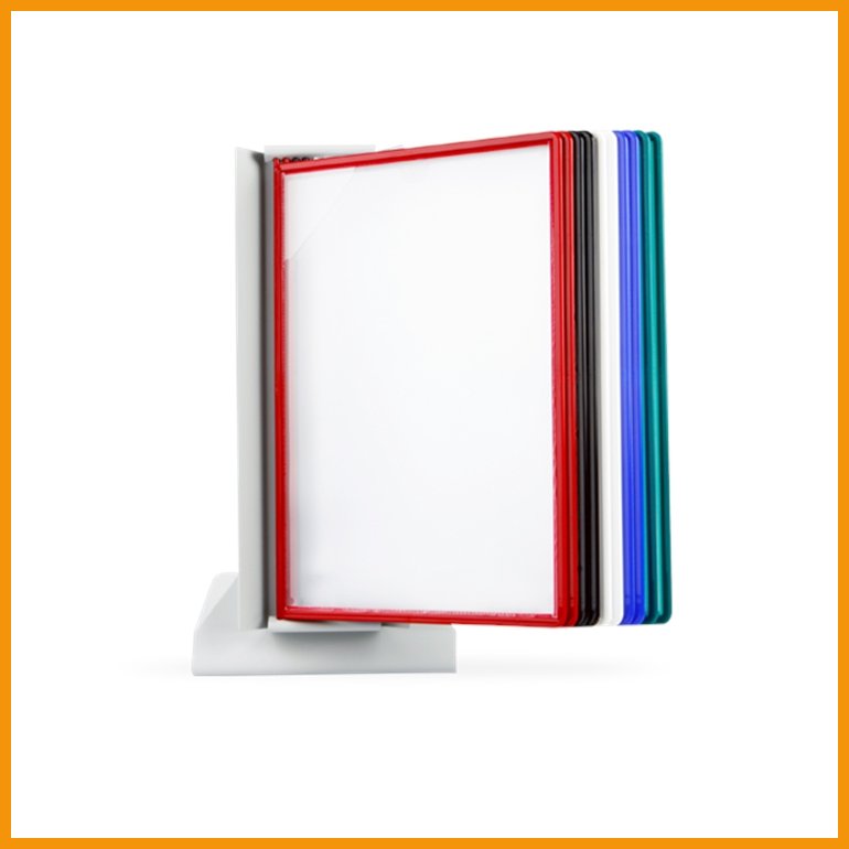 Superior-pikahakuteline on käytännöllinen tapa monenlaisten materiaalien esillepanoon. Pöydälle asetettavan metallisen telineen mukana tulee 10 kirkasta taskua värillisillä kielekkeillä.Koko: A4