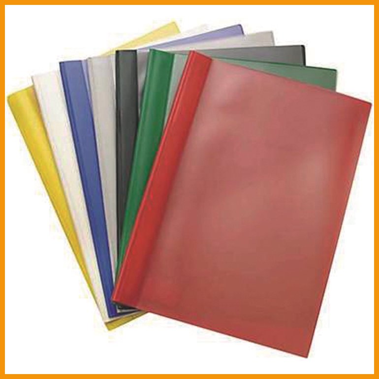 E462-pikanitojakansiossa on kirkas etukansi ja värilliset takakansi ja selkämys. Paperit napakasti paikallaan pitävän metallisen mekanismin päällä on laadukkaan vaikutelman antava peitelista. Kestävä kansio on valmistettu vahvasta (300 my) muovista.Koko: A4
