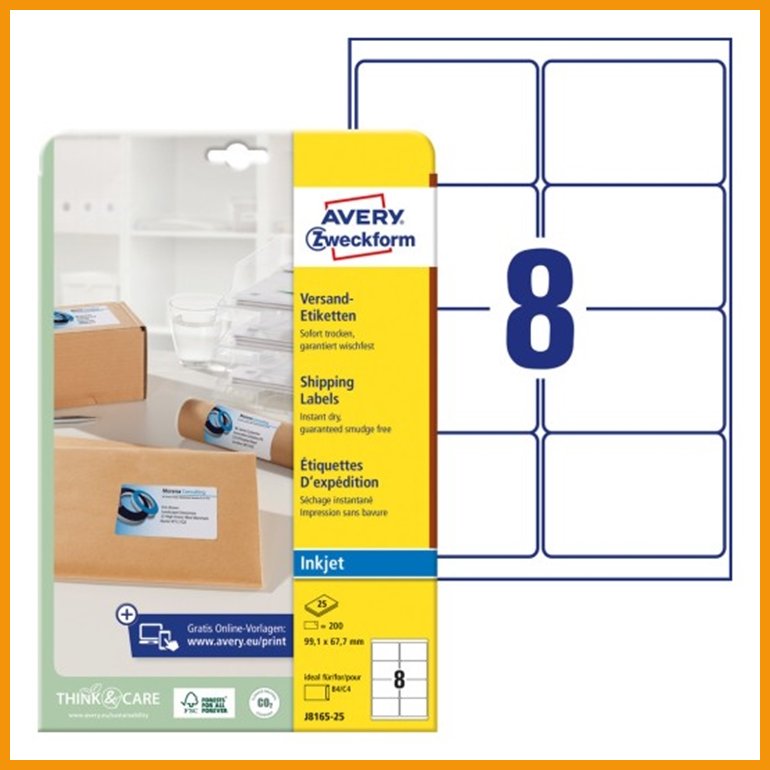 Averyn postitustarrat voidaan tulostaa tavallisella mustesuihkutulostimella ilman tukoksia tai mustetahroja. Tarroissa on tulostuksen laatua parantava pinnoitus ja pyöristetyt kulmat.Tuote on valmistettu FSC-sertifioidusta kuidusta ja valkaistu ilman klooria.