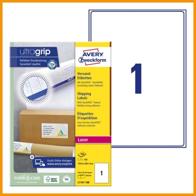 Postitustarra laser Avery L7167-100 199,6 x 289,1 mm /100 on korkealaatuinen toimistotarvike, jonka verkkokaupan tilauksen toimitus kestää 1-2 päivää. Tiedäthän, että hinnaltaan yli 140 € verkkokauppatilaus toimitetaan aina ilmaiseksi! Meiltä voit tilata laskulla ja ilman rekisteröitymistä.