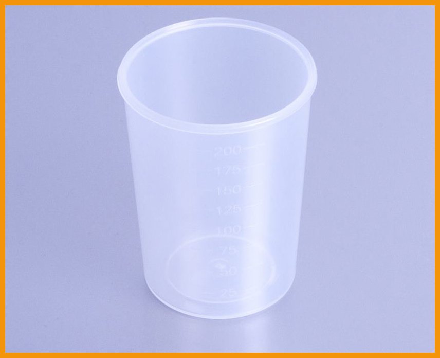 Läpikuultava korvaton potilasmuki mitta-asteikolla.Tilavuus: 20 cl