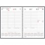 Pöytäkalenterin arkkien väri on valkoinen ja keinonahkaisen kannen väri on musta. Kalenterin arkit on sidottu kaksoiskierteellä. Korkealuokkaisen pöytäkalenterin ajanjakso kattaa kalenterivuoden tammikuusta joulukuuhun (12 kk). Kalenterissa on 1 viikko per aukeama. Kellonajat on pöytäkalenteriin painettu tunnin välein. Pöytäkalenterin koko on 14,8 x 21 cm.Pöytäkalenterit ja päiväkirjat tuotteiden toimitustiedot