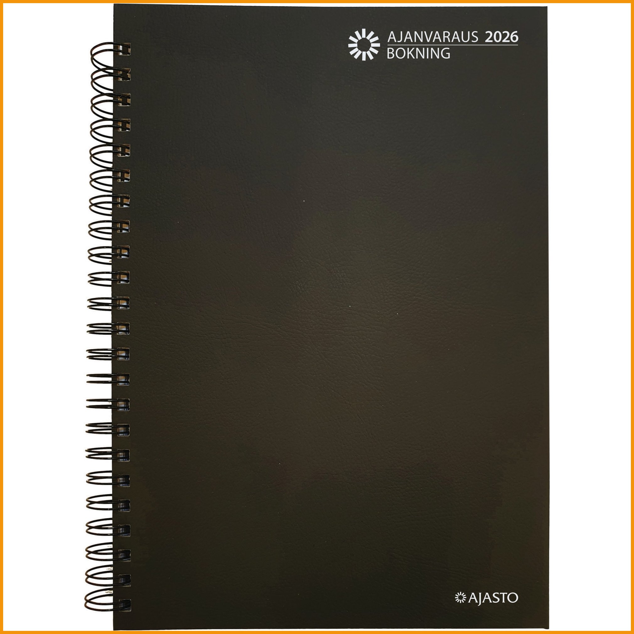 Pöytäkalenteri 2026 Ajasto ajanvaraus sidottu musta 210 x 297mm
