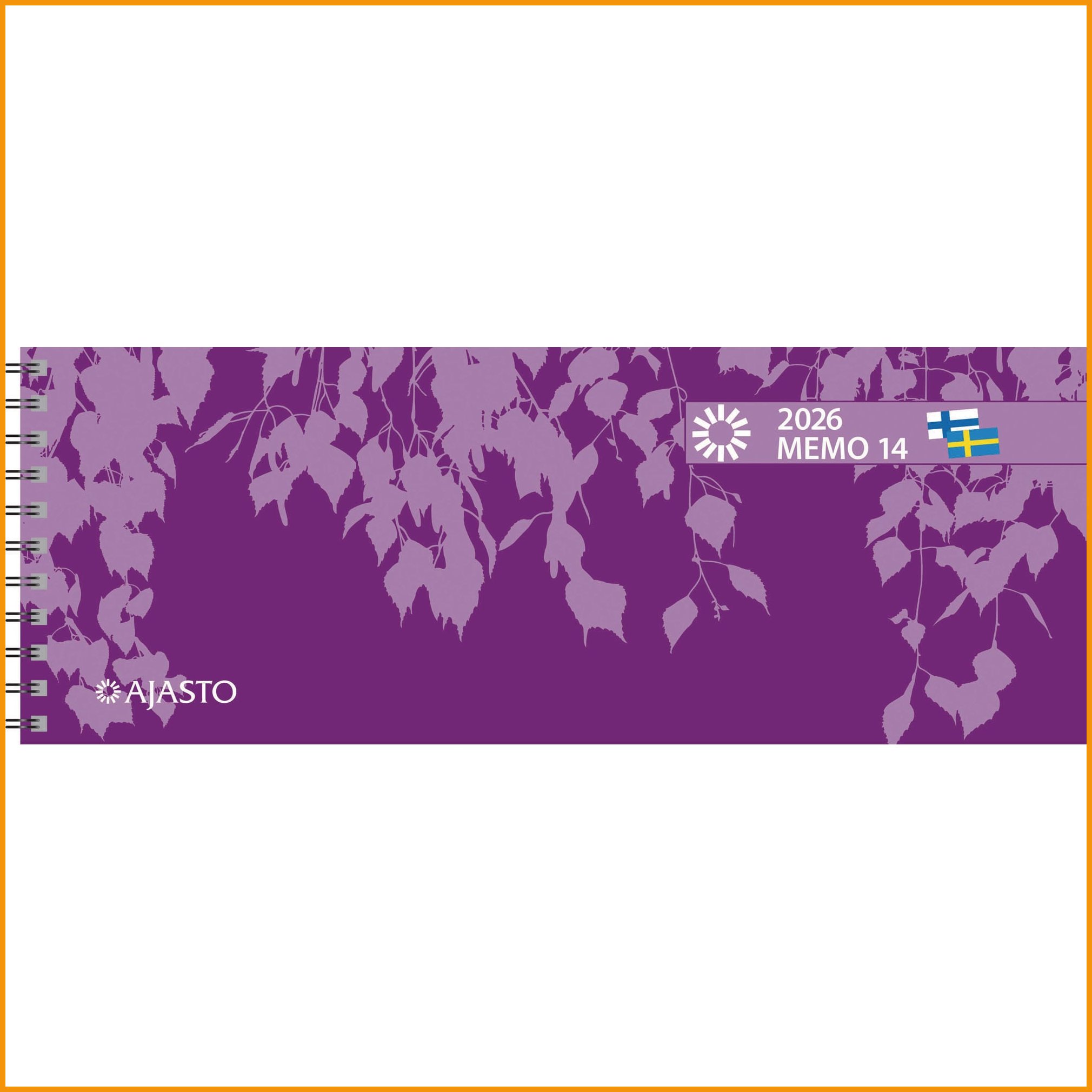 Pöytäkalenteri 2026 Ajasto memo 14 lila 255 x 95 mm tuotetiedot