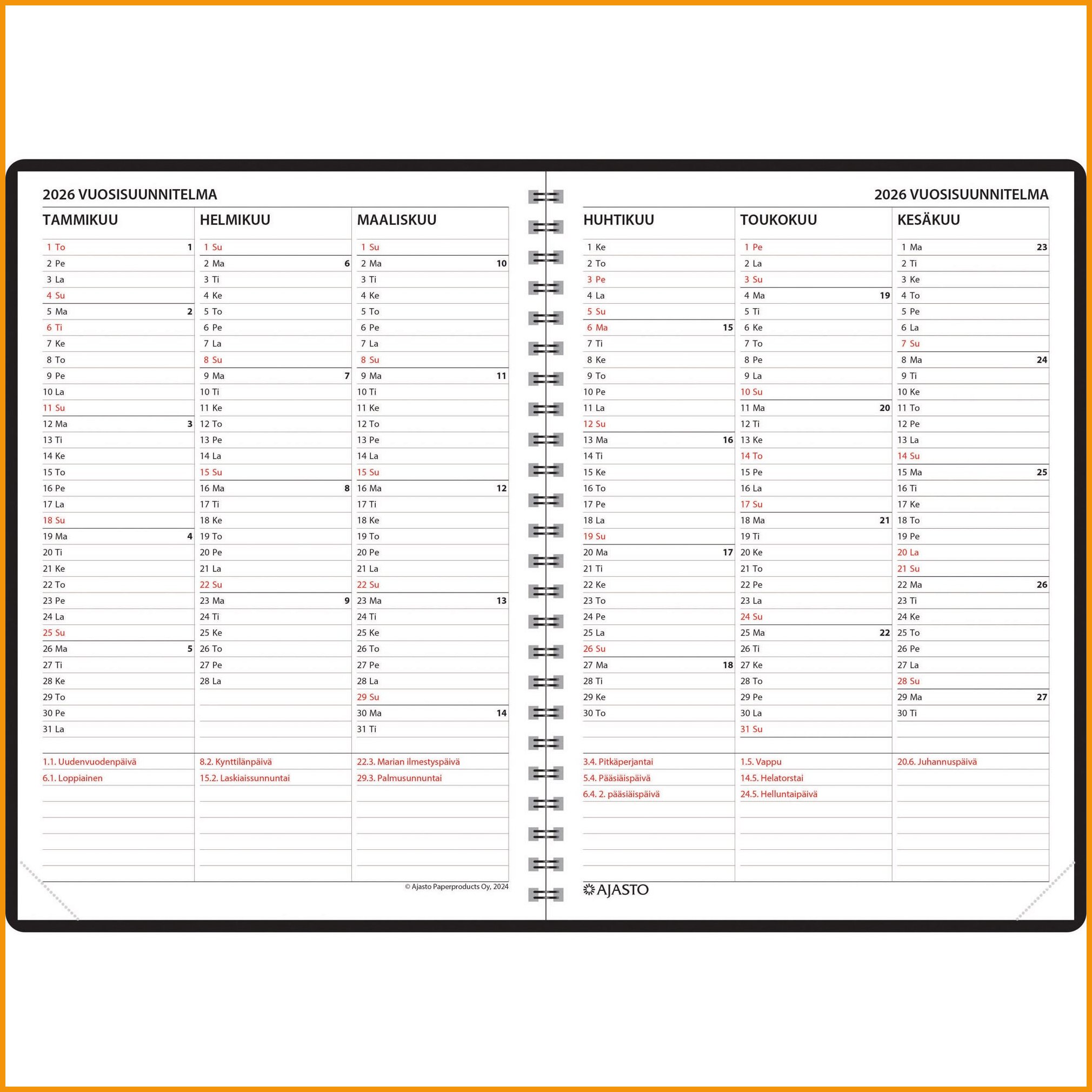 Pöytäkalenteri 2026 Ajasto pöytäpäivyri 83 x 119mm