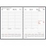 Pöytäkalenterin arkkien väri on valkoinen ja kannen väri on tummanharmaa. Kalenterin arkit on sidottu kaksoiskierteellä. Edullisen pöytäkalenterin ajanjakso kattaa kalenterivuoden tammikuusta joulukuuhun (12 kk). Kalenterissa on 1 viikko per aukeama. Kellonajat on pöytäkalenterissa esitetty 1 tunnin välein. Pöytäkalenteri on kooltaan 14,8 x 21 cm.Pöytäkalenterit ja päiväkirjat tuotteiden toimitustiedot