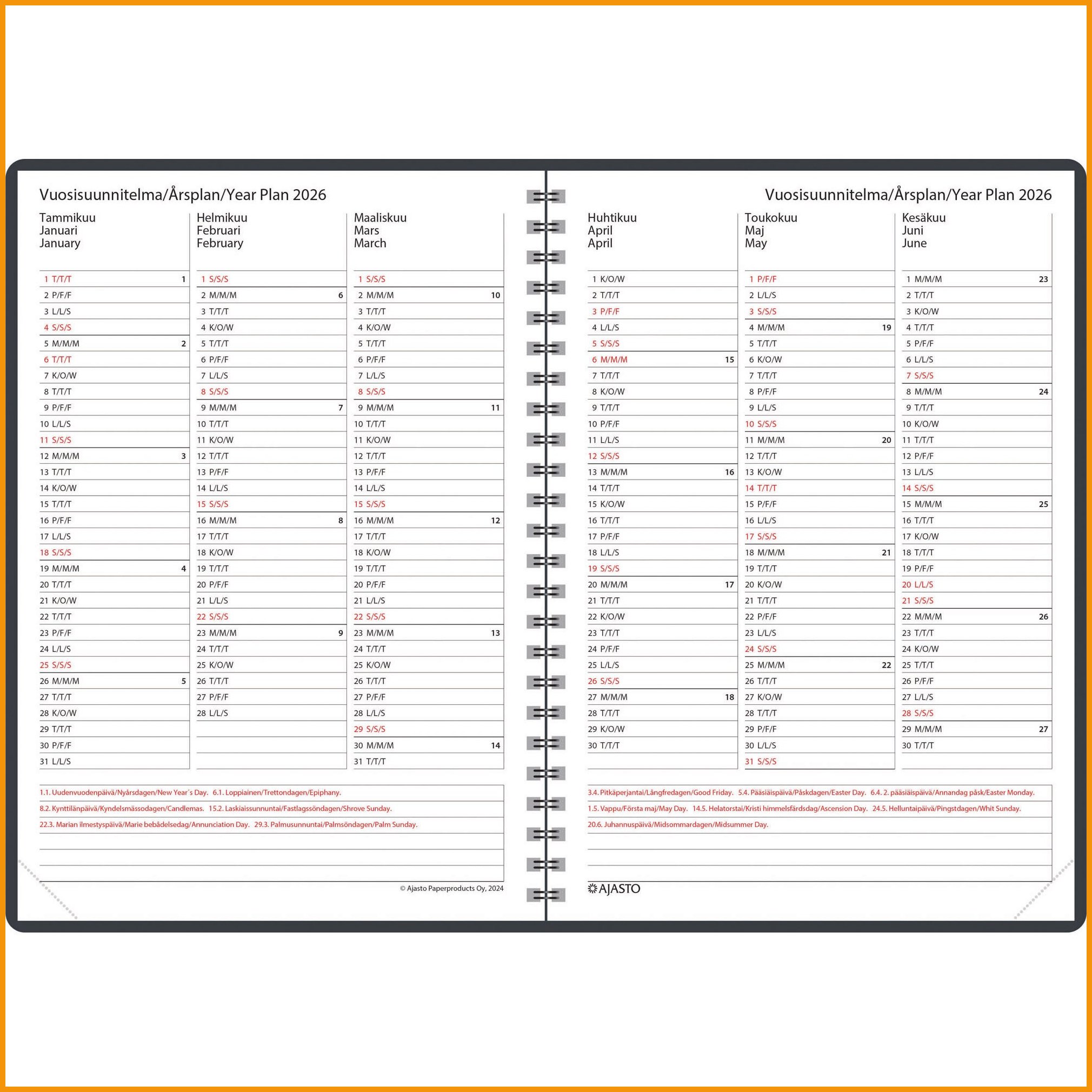Pöytäkalenteri 2026 Ajasto pöytäpäivyri 83 x 119mm
