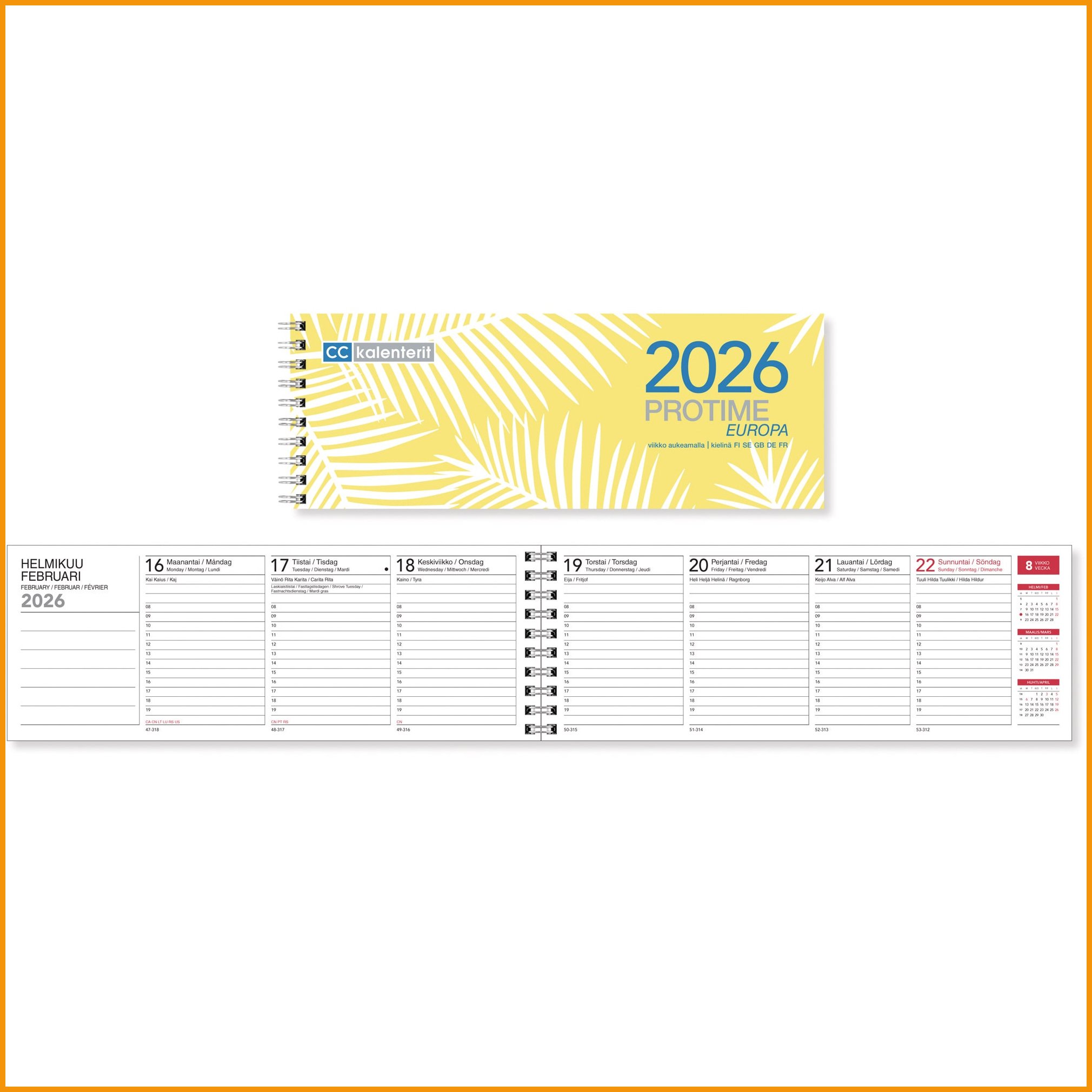 Pöytäkalenteri 2026 Cc 3206 protime 2 eko 255 x 95mm