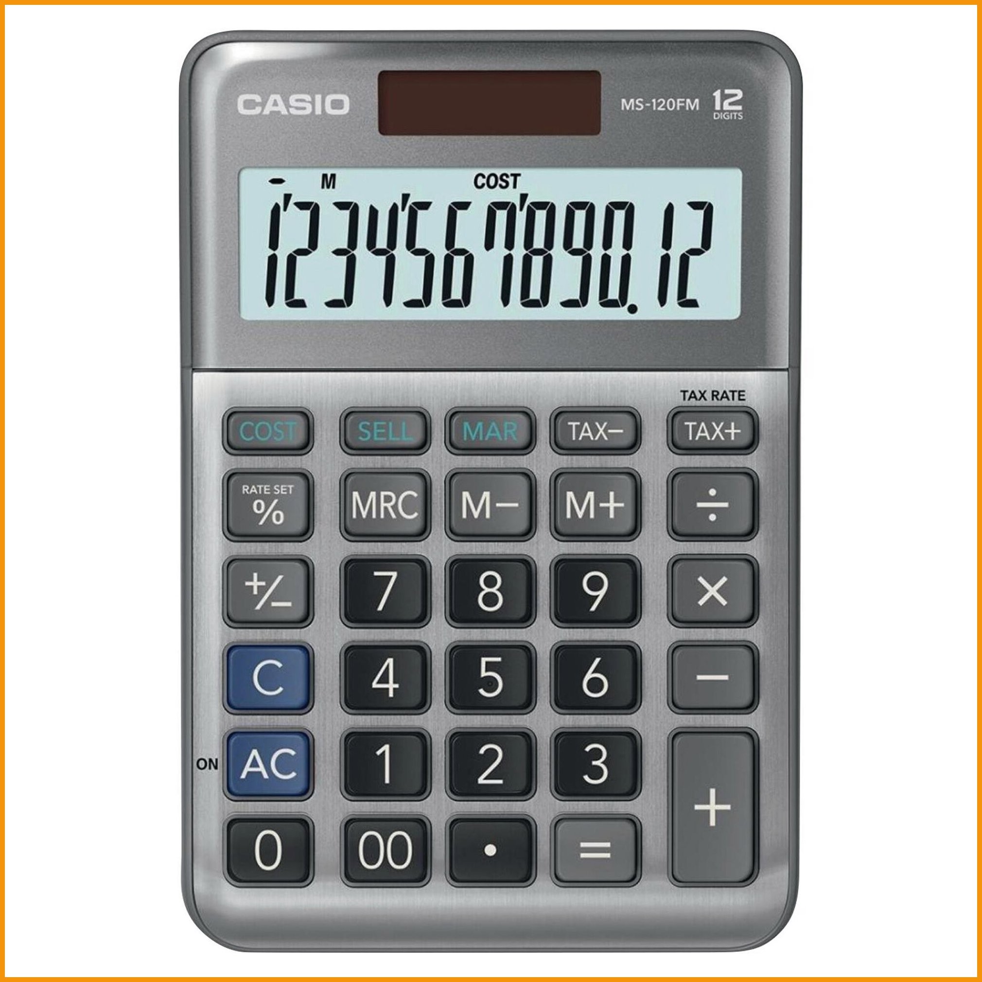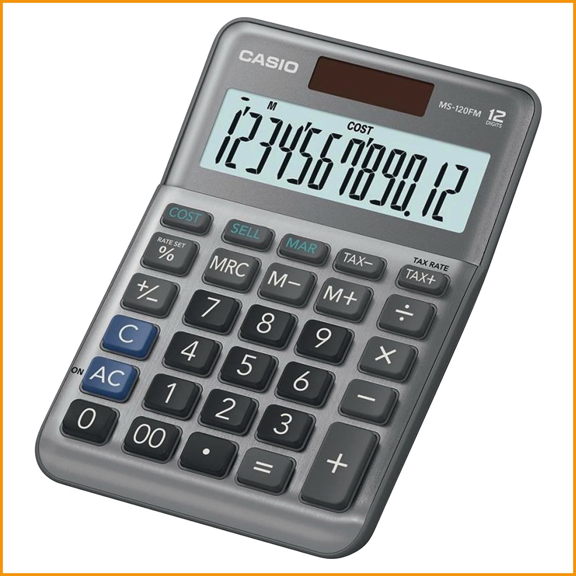 Casio ms-120fm mini pöytälaskin 12 numeron näytöllä tarjoaa selkeyttää ja helppoutta laskutehtäviin sekä mukavuutta sormille. laskimen ergonomiset näppäimet ovat miellyttävät käyttää ja pehmeät kumitassut pitävät laskimet tukevasti pöydällä paikoillaan. pöytälaskimen näppäinpöytä on kestävää alumiinia. laskimelle antaa virtaa aurinkokenno ja lisäturvana on paristovarmennus.Pöytälaskin Casio ms-120fm mini 12 numeron näyttö on korkealaatuinen laskin, jonka verkkokaupan tilauksen toimitus kestää 1-2 päivää. Muistathan, että hinnaltaan yli 140 € verkkokauppatilaus toimitetaan aina ilmaiseksi! Meiltä voit tilata laskulla ja ilman rekisteröitymistä.