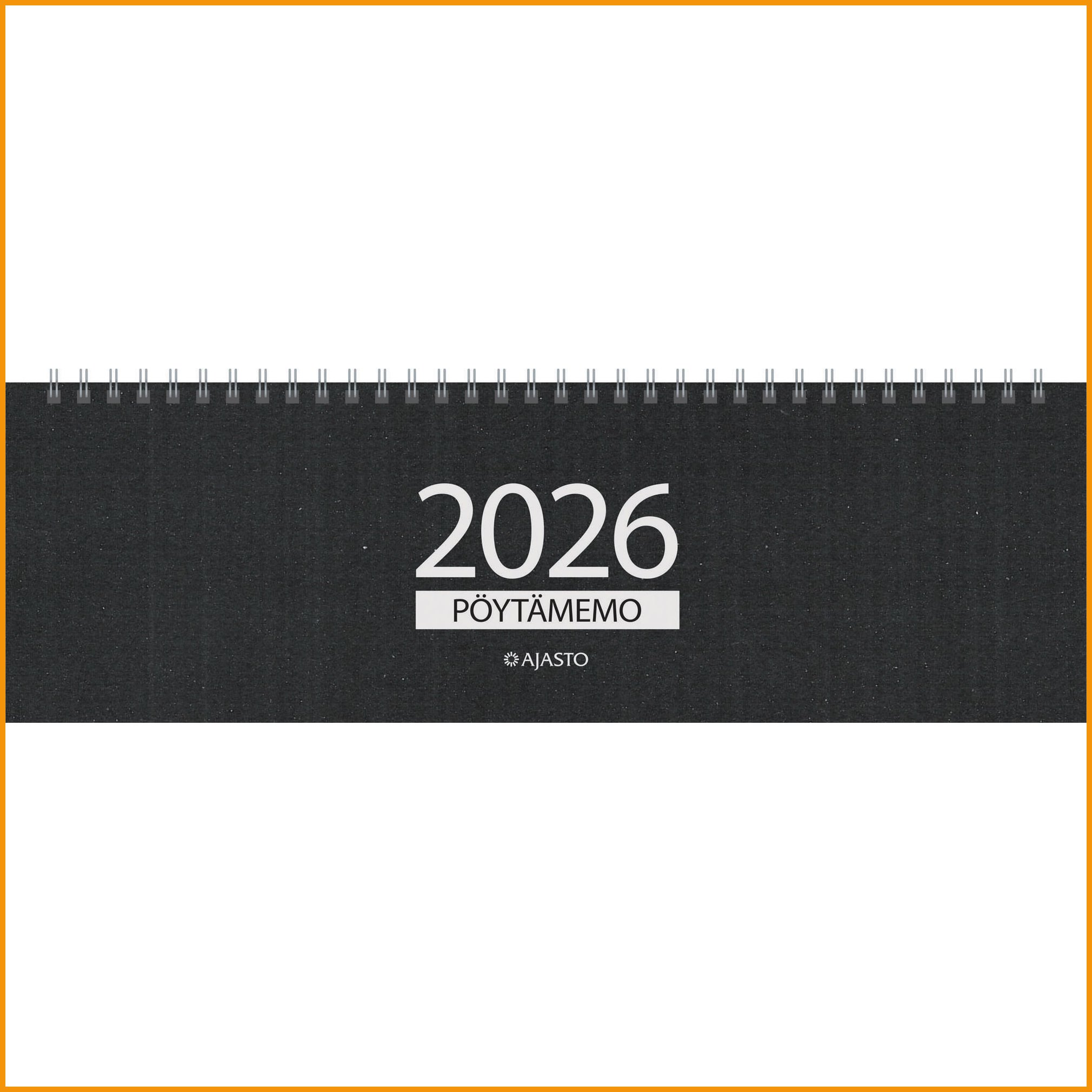 Pöytämemo 2026 Ajasto pöytäkalenteri musta 305 x 90 mm tuotetiedot