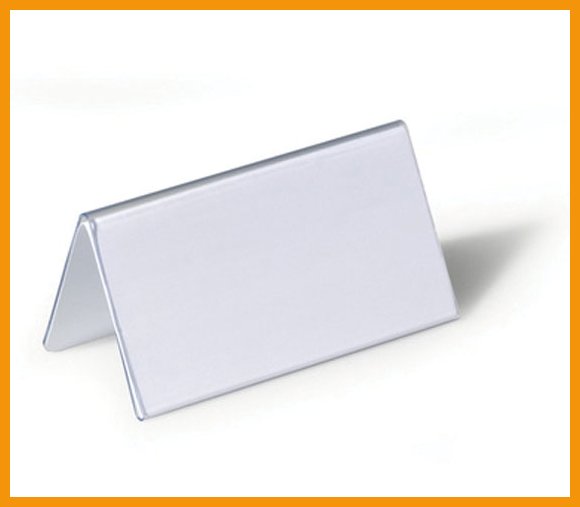 Durable 805119 -pöytäkilpi on valmistettu tukevasta PVC-muovista ja luettavissa molemmilta puolilta. Kyltin mukana tulevat vaihdettavat kartonkiset kortit (52 x 100 mm).Kyltin sisämitat: 54/104 x 100 mm