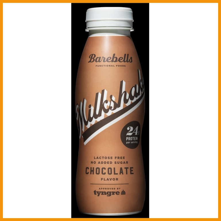 Barebells Milkshake on samettisen pehmeä ja täyteläinen proteiinijuoma välipalaksi tai treenien palautusjuomaksi. Suklaan makuisessa pirtelössä on 24 g proteiinia eikä lainkaan lisättyä sokeria. Laktoositon herkku on valmis nautittavaksi. UHT-käsitelty tuote säilyy huoneenlämmössä.Ainesosat: maito, vesi, maitoproteiini, kaakaojauhe (0,9 %), aromi (suklaa), stabilointiaine (selluloosa, karboksimetyyliselluloosa, karrageeni), makeutusaine (asesulfaami-K, sukraloosi), laktaasi.