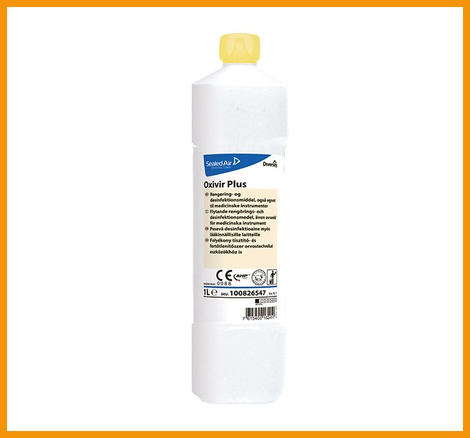 Diversey Oxivir Plus on hapettava (peroksidipohjainen) puhdistus- ja desinfektioaine vettä sietävien pintojen pesuun ja desinfektioon. CE IIa -sertifioitu ja PT2- ja PT4-hyväksynnät saanut tuote soveltuu myös lääkinnällisien laitteiden pesuun ja desinfektioon. Teho viruksiin, bakteereihin ja hiivoihin on osoitettu EU-standardien mukaisesti.Hajusteeton ja käyttäjäturvallinen tuote ei valkaise tai jätä raitoja. Se sopii niin alumiinille kuin aroillekin tekstiilipinnoille ja eritetahradesinfektioon.