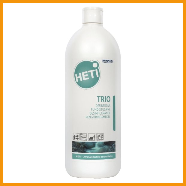Puhdistusaine Heti trio desinfioiva 1l on hyvälaatuinen puhdistusaine, jonka verkkokaupan tilauksen toimitus kestää 1-2 päivää.Tiedäthän, että ilmainen toimitus on kaikilla yli 140 € hintaisilla tilauksilla! Meiltä voit tilata laskulla ja ilman rekisteröitymistä.