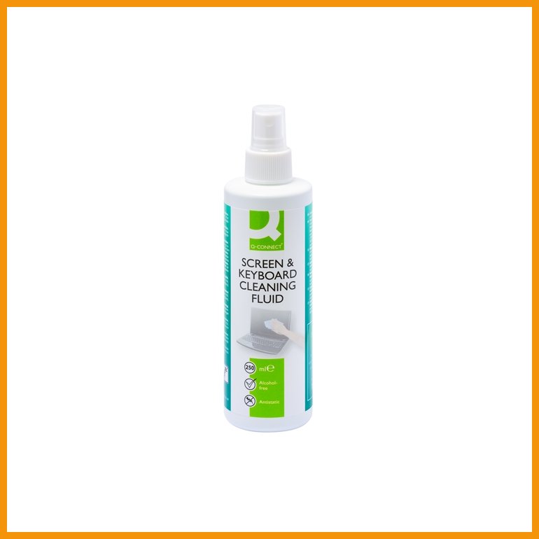 Q-Connectin antistaattinen puhdistusneste poistaa sormenjäljet, rasvan ja pinttyneen lian lasilta ja muilta kovilta pinnoilta, kuten näytöiltä, häikäisysuojista, televisioista, piirtoheittimistä, näppäimistöistä ja kopiokoneista. Tuotteen käyttäminen ehkäisee myös pölyn muodostumista jatkossa. Suihkuta ainetta ensin kuivalle liinalle ja pyyhi. Tuote on CFC-vapaa, alkoholiton ja vesipohjainen.Sisältö: 250 ml.