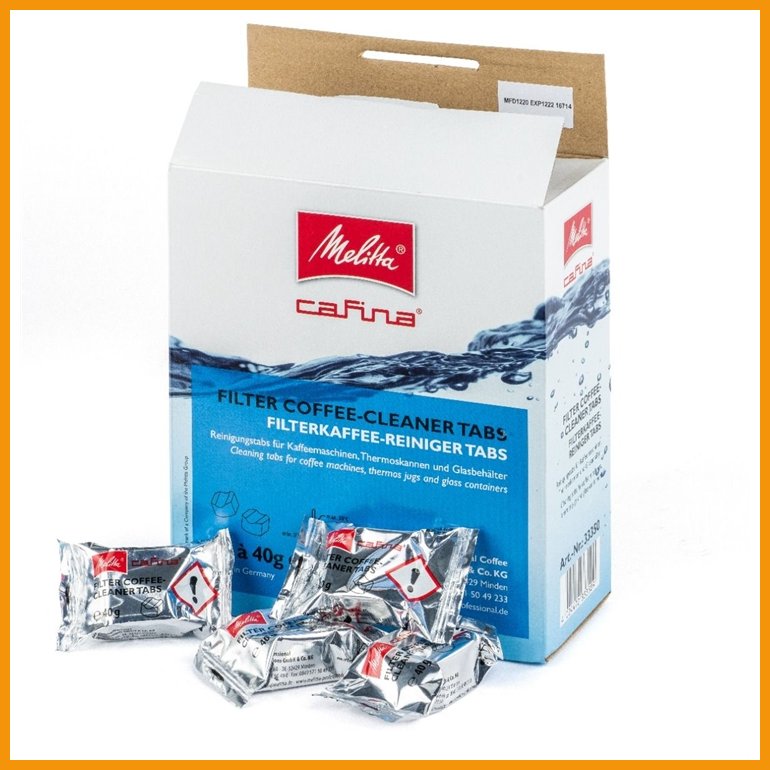 Melitta Cafina Filter Coffee-Cleaner Tabs -puhdistustabletit XT8-F suodatinkahvilaitteen puhdistukseen.Paino: 40 g