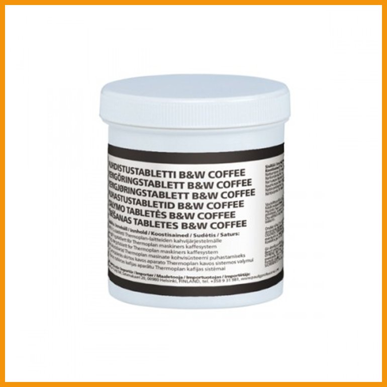 B&W -puhdistustabletti sopii Thermoplan Black & White One- ja Black & White 3 -kahvijärjestelmille (ei sovellu B&W 4/4c -laitteille).Purkissa on 90 tablettia.