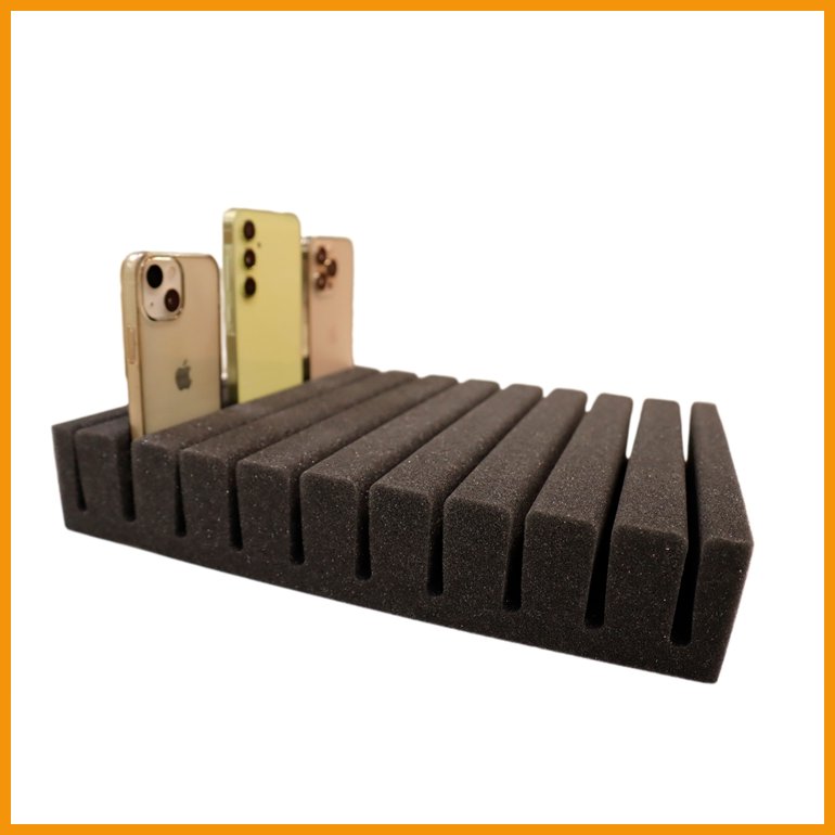 Puhelinparkin vaahtomuovinen sisäosa toimii muovilaatikon kanssa yhdessä ja muodostaa toimivan puhelinparkin jopa 30 puhelimelle. Vaahtomuovissa on 10 uraa, joihin jokaiseen mahtuu 3 puhelinta pystyyn.