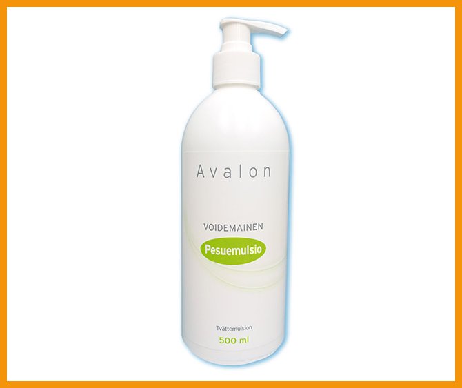 Avalon Pesuemulsio on saippuan sijasta käytettävä, hoitavia öljyjä sisältävä vesiemulsio erityisesti vaippa-alueen iholle. Voidemainen, samanaikaisesti puhdistava ja hoitava tuote ei kuivata ihoa eikä sitä tarvitse huuhtoa. Valmistettu Suomessa.Pakkauskoko: 500 ml pumppupullossa