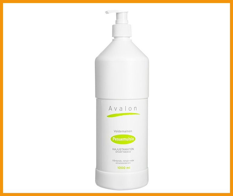 Avalon Pesuemulsio on saippuan sijasta käytettävä, hoitavia öljyjä sisältävä vesiemulsio erityisesti vaippa-alueen iholle. Voidemainen, samanaikaisesti puhdistava ja hoitava tuote ei kuivata ihoa eikä sitä tarvitse huuhtoa. Valmistettu Suomessa.Pakkauskoko: 1 litra pumppupullossa