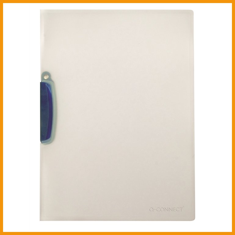 Q-CONNECT Colour Clip -puristuskansiossa on kääntyvä ja värillinen mekanismi. Kokonaan aukeavat kannet ovat läpikuultavaa ja huurrettua PP-muovia. Tuotteen valmistuksessa on käytetty kierrätysmateriaalia.Koko: A4