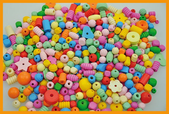 Puuhelmet Playbox punainen, keltainen ja oranssi 250 g