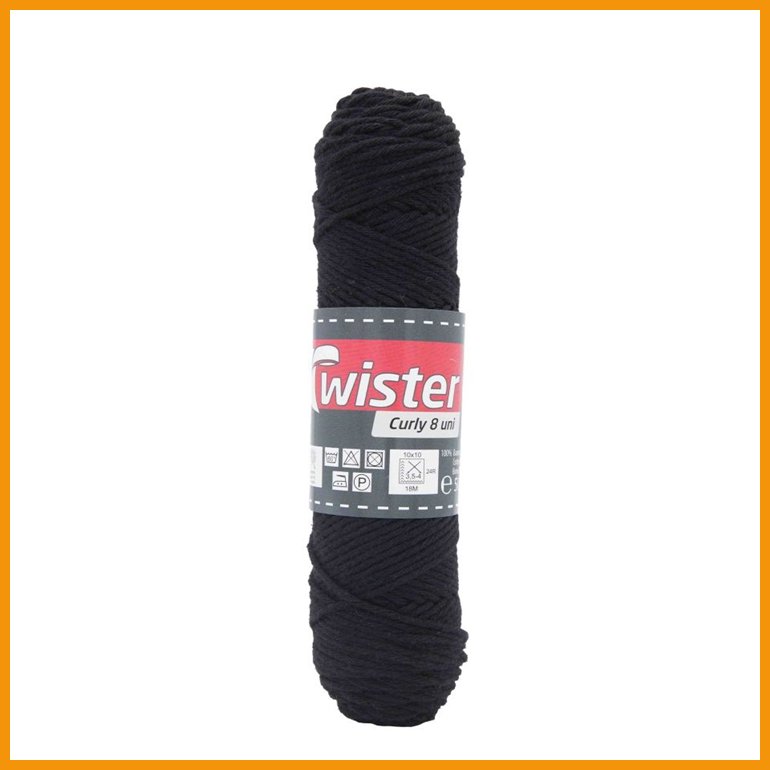 Twister Curly 8 on pehmeä, merseroimaton puuvillalanka virkkaukseen ja neulomiseen. Monikäyttöinen lanka sopii sekä vaatteisiin ja asusteisiin että erityisesti kodintarvikkeisiin, kuten pannunalusiin, patalappuihin, kasseihin, pesulappuihin ja säilyttimiin. Lanka kestää 60 °C konepesun.Pakkauskoko: 50 g = 85 m