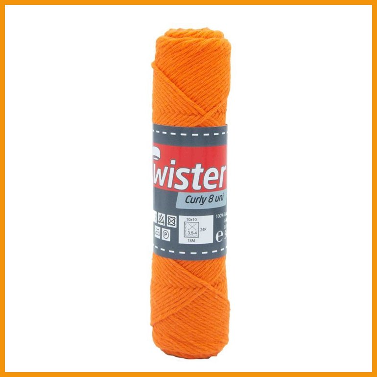 Twister Curly 8 on pehmeä, merseroimaton puuvillalanka virkkaukseen ja neulomiseen. Monikäyttöinen lanka sopii sekä vaatteisiin ja asusteisiin että erityisesti kodintarvikkeisiin, kuten pannunalusiin, patalappuihin, kasseihin, pesulappuihin ja säilyttimiin. Lanka kestää 60 °C konepesun.Pakkauskoko: 50 g = 85 m