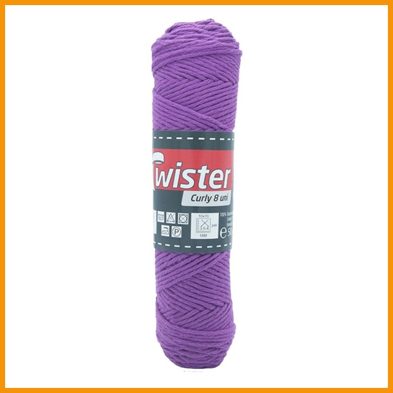 Twister Curly 8 on pehmeä, merseroimaton puuvillalanka virkkaukseen ja neulomiseen. Monikäyttöinen lanka sopii sekä vaatteisiin ja asusteisiin että erityisesti kodintarvikkeisiin, kuten pannunalusiin, patalappuihin, kasseihin, pesulappuihin ja säilyttimiin. Lanka kestää 60 °C konepesun.Pakkauskoko: 50 g = 85 m
