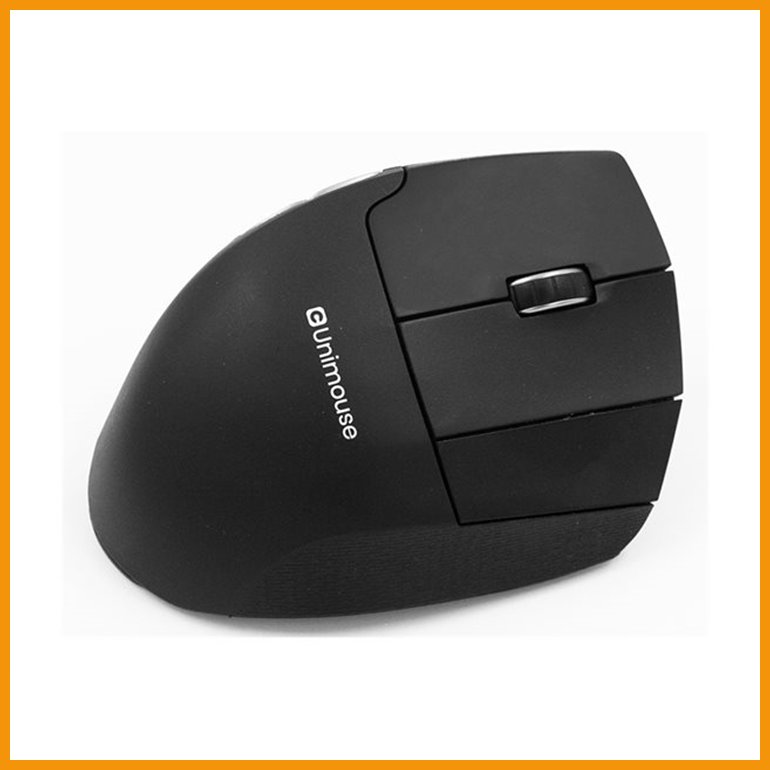 Contour Unimouse on oikeakätisen langaton pystyhiiri, jonka innovatiivinen muotoilu vähentää käsiin ja ranteisiin kohdistuvaa rasitusta. Hiiren patentoidun nivelsaranan avulla voit säätää kallistuskulman juuri sinun kädellesi sopivaan asentoon. Kulma on säädettävissä portaattomasti välillä 35-70 °, ja hiiri myös pysyy vakaasti valitussa asennossa. Rennon ja ergonomisen työskentelyasennon viimeistelee kaikkiin suuntiin säädettävä nivelletty peukalotuki, jonka avulla vältät tyvinivelen kivut ja muut hiiren käytöstä aiheutuvat rasitusvammat.Kymmenestä vaihtoehdosta valittava ohjaimen tarkkuus, seitsemän painiketta (joista kuusi ohjelmoitavaa) ja kitkaton vierityspyörä tekevät työskentelystä mukavaa ja tehokasta. Tuote on valmistettu 57-prosenttisesti kierrätetystä muovista.