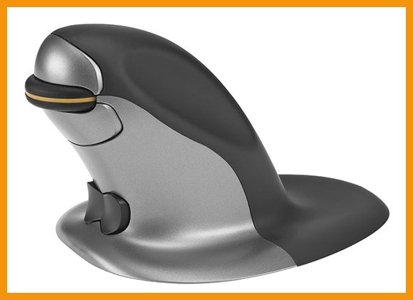 Ergonominen Penguin on molemmille käsille soveltuva uniikki pystyhiiri, jonka käyttäminen ennaltaehkäisee hiirikäden rasitusvaivojen syntymistä. Kun ranne pysyy luonnollisessa asennossa, ei käsivarsikaan rasitu niin kuin tavallista hiirtä käytettäessä. Langattomassa hiiressä on antimikrobinen pinta, pehmeä painiketuntuma, säädettävä tarkkuus ja oma näppäin vierityksen suunnan vaihtamiseen. Pohjan alusta keventää pitoa tarkkuudesta tinkimättä.Mitat: 145 x 98 x 109 mm
