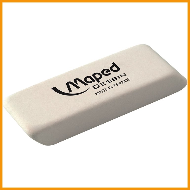 Maped Dessin on laadukas, luonnonkumista valmistettu pyyhekumi, jonka pyöristeyt reunat ja viisto muoto tuovat tarkkuutta työskentelyyn. Ei sisällä PVC:tä eikä ftalaatteja.Mitat: 5,7 x 1,8 x 0,9 cm.
