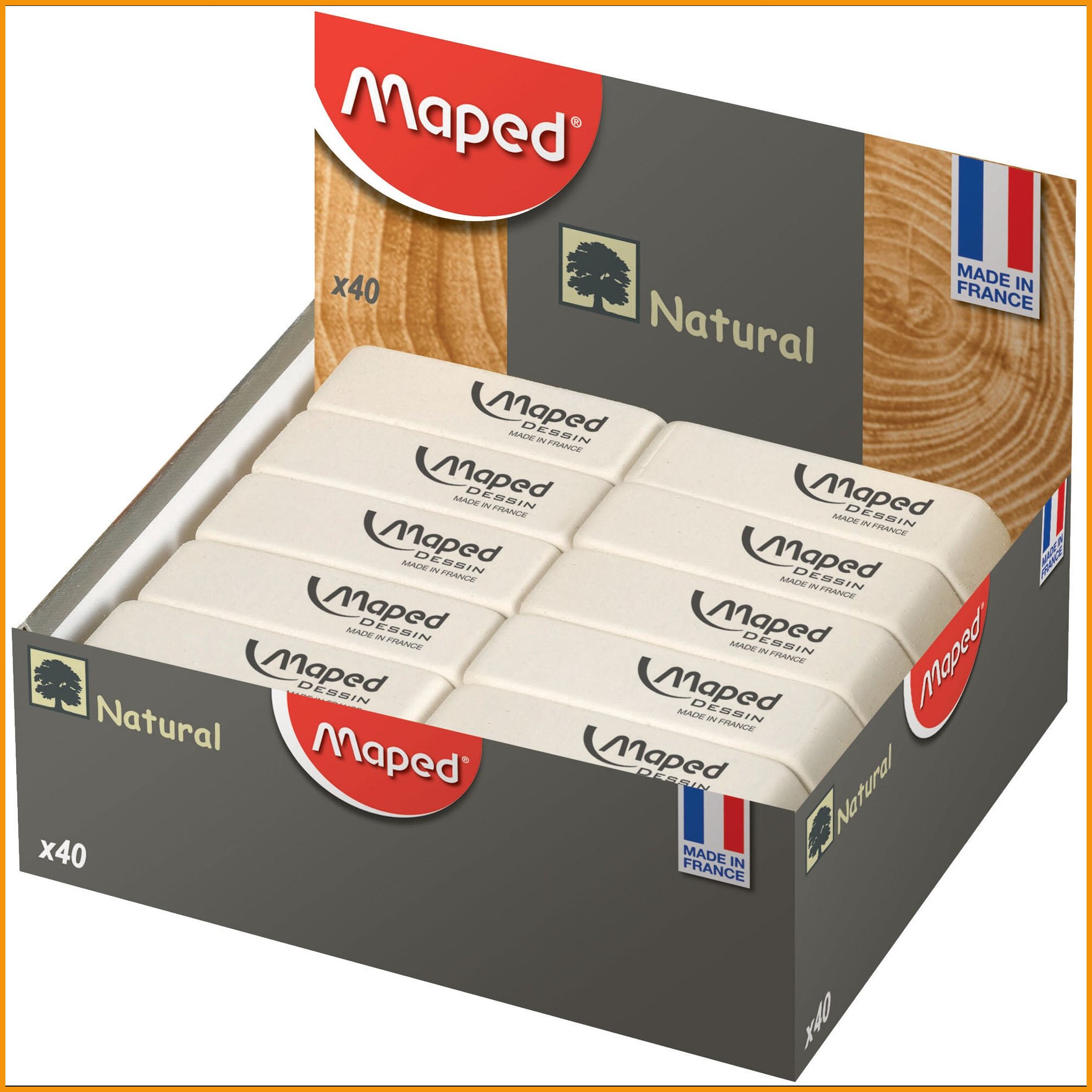 Luonnonkuminen pyyhekumi. Pyyhekumin mitat ovat: 54 x 18 x 8,8 mm. pvc ja ftalaatti-vapaa. Pyyhekumien minimitilaus 1 paketti = kpl . Tukkupakkauksessa 40 pakettia.Pyyhekumi Maped luonnonkumi 54 x 18 x 8,8mm on upea toimistotarvike, jonka toimituksen kesto on verkkokaupasta tilattuna 1-2 päivää. Huomaa, että hinnaltaan yli 140 € verkkokauppatilaus toimitetaan aina ilmaiseksi! Meiltä voit tilata laskulla ja ilman rekisteröitymistä.