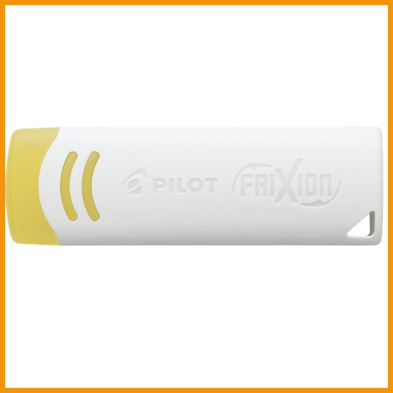 Pyyhekumi Pilotin poispyyhittäville Frixion-kynille. Kulmassa on reikä, josta kumin saa kiinni avaimiin, penaaliin tms.Pyyhekumi Pilot FriXion -kynille on korkeatasoinen toimistotuote, jonka toimituksen kesto on verkkokaupasta tilattuna 1-2 päivää.
