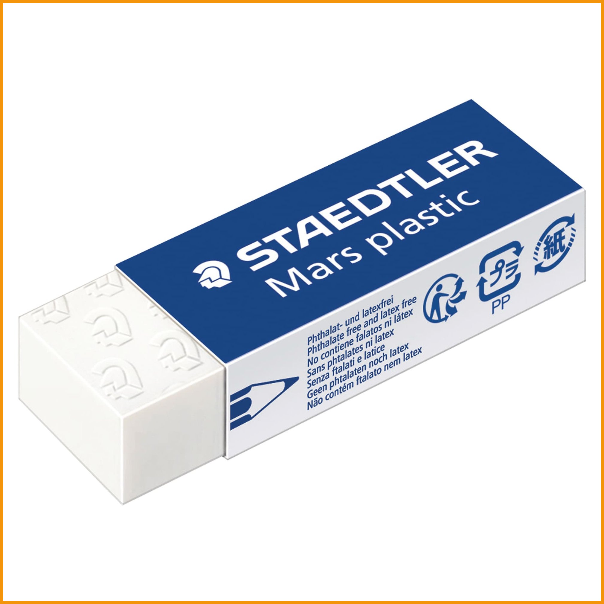 Staedtler mars 526 -pyyhekumi käy myös piirtoheitinkynille. Suojapahvi pitää roskaamattoman kumin puhtaana. Ei sisällä lateksia. Pyyhekumin mitat ovat: 65 x 23 x 13 mm. Pyyhekumin minimitilaus 1. Tukkupakkauksessa 20. Lavalla 600.Pyyhekumi Staedtler mars 526 50 on tasokas toimistotarvike, jonka verkkokaupan tilauksen toimitus kestää 1-2 päivää. Huomaa, että ilmainen toimitus on kaikilla yli 140 € hintaisilla tilauksilla! Meiltä voit tilata laskulla ja ilman rekisteröitymistä.