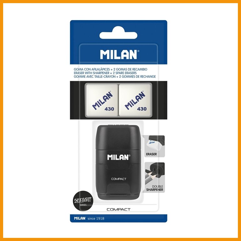 Pyyhekumi + teroitin MILAN COMPACT Shadow musta +2 varakumia hinta 3,46€