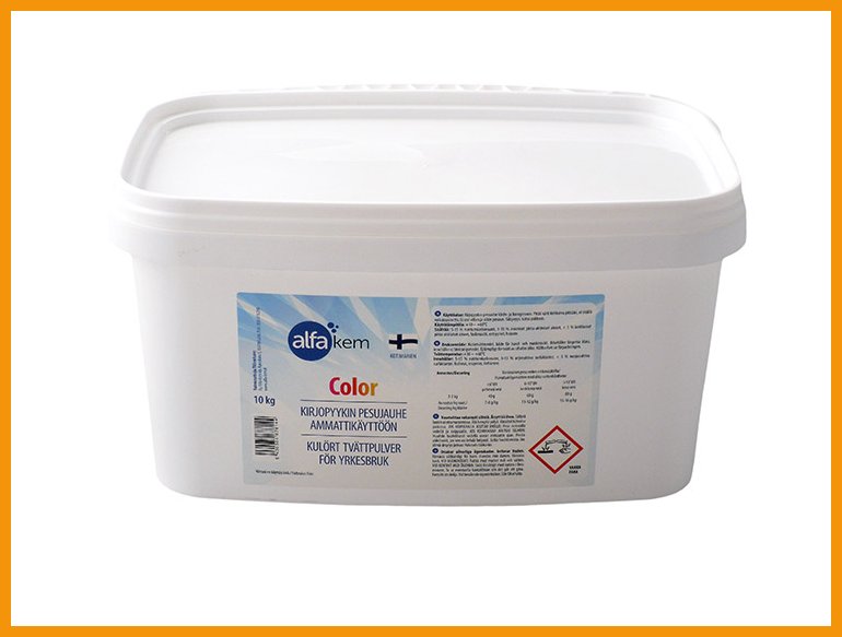 Alfakemin Color on zeoliititon ja fosfaatiton pyykinpesujauhe kirjopyykille. Valkaisuaineeton tuote pitää värit kirkkaina pitkään. Ainetta ei suositella villan tai silkin pesuun.Pakkauskoko: 10 kg