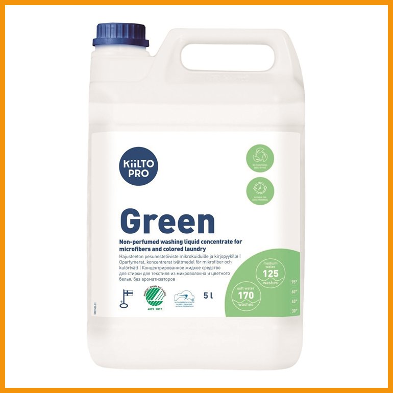 Kiilto Pro Green Liquid Textile on kasvipohjaisista raaka-aineista valmistettu nestemäinen tekstiilienpesuaine. Hajusteeton, zeoliititon, kirkasteeton ja fosfaatiton aine on ystävällinen niin ympäristölle kuin ihmisellekin. Värisuojan ansiosta se soveltuu myös kirkasvärisille tekstiileille, jotka sisältävät valkoista.Kotimaisella ja hellävaraisella Kiilto Pro Natura -sarjan tuotteella on Avainlippu, pohjoismainen Joutsenmerkki ja Allergia-, Iho- ja Astmaliiton tunnus.