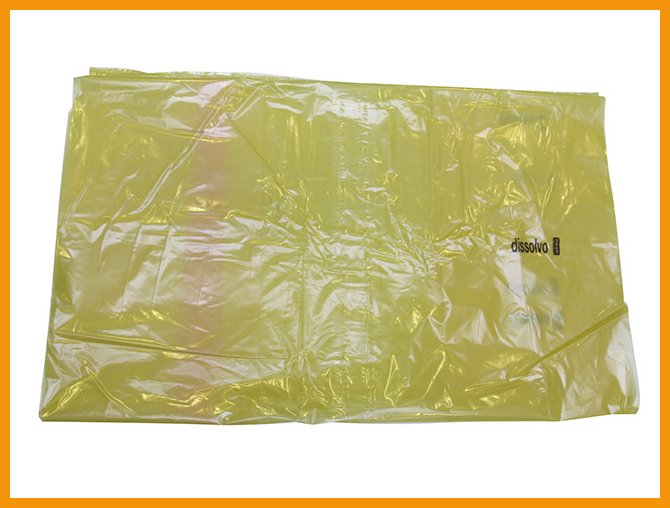 Vestekin lämpimään veteen liukeneva säkki soveltuu erinomaisesti mm. infektiopyykille. Polyvinyylialkoholimuovista valmistettu pussi liukenee pesukoneessa jättämättä koneeseen minkäänlaisia jäämiä.Mitat: 600 x 840 mm, vahvuus 20 my