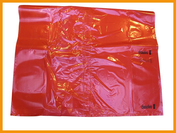 Vestekin lämpimään veteen liukeneva säkki soveltuu erinomaisesti mm. infektiopyykille. Polyvinyylialkoholimuovista valmistettu pussi liukenee pesukoneessa jättämättä koneeseen minkäänlaisia jäämiä.Mitat: 600 x 840 mm, vahvuus 20 my