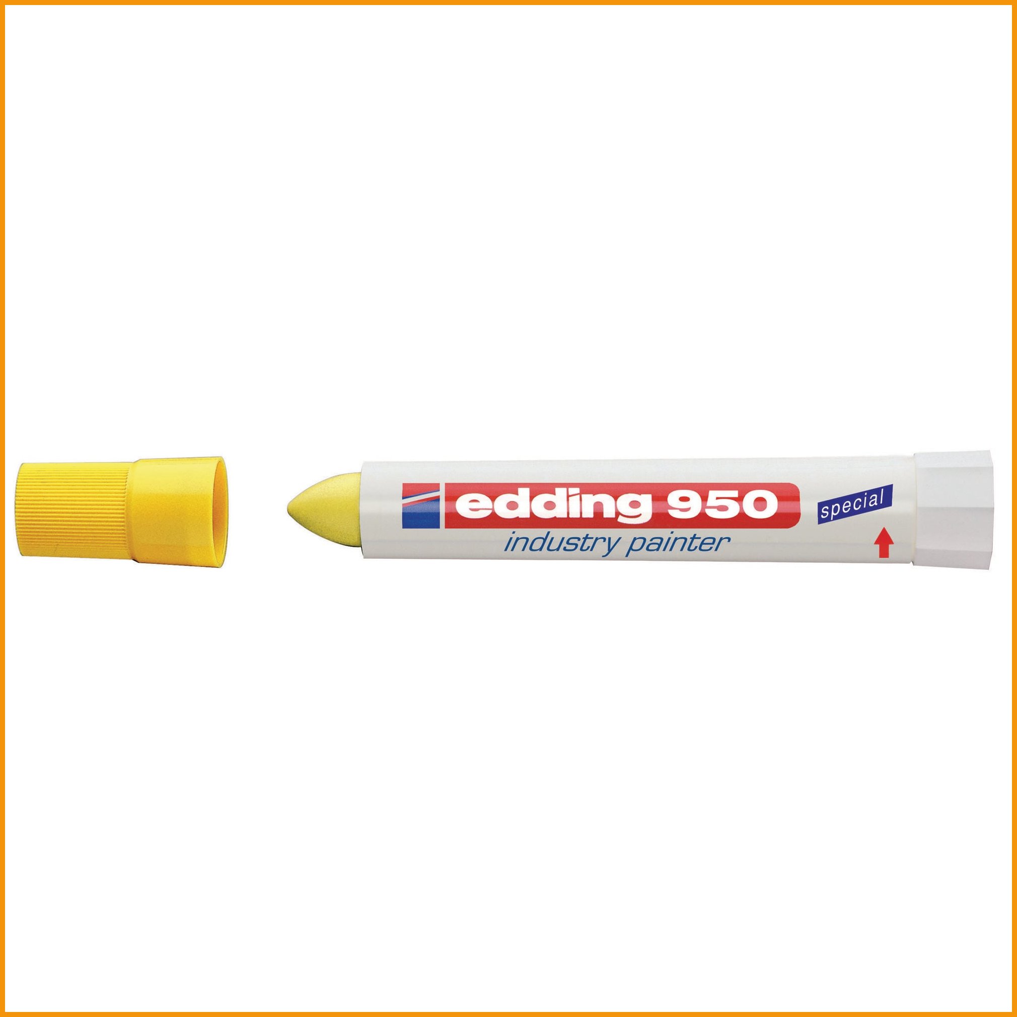Keltainen rasvakynä Edding 950 pyöreä on lähes kaikille materiaaleille sopiva pysyvään merkitsemiseen tarkoitettu maalitussi. Maali on vedenkestävää ja kulutustakestävää.
