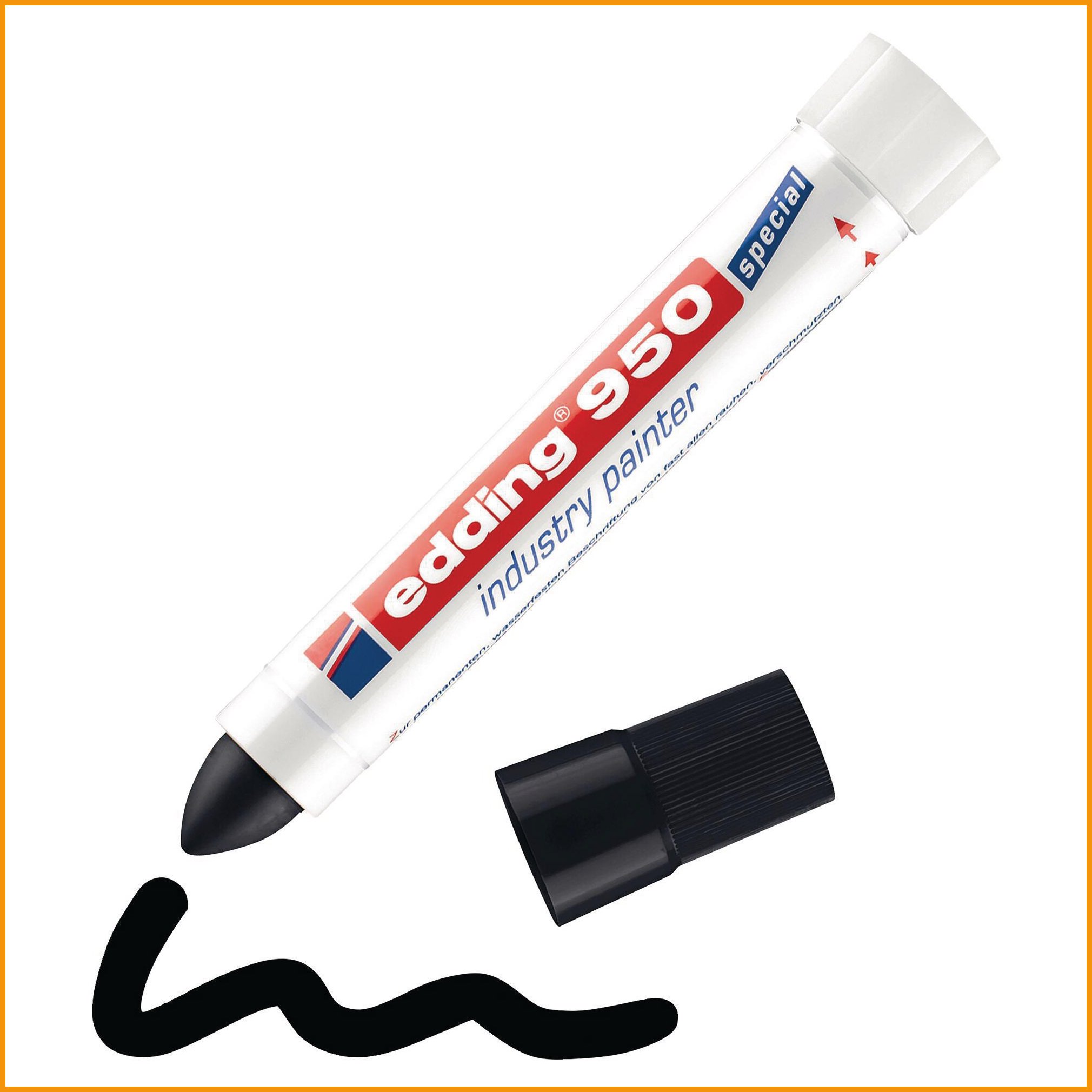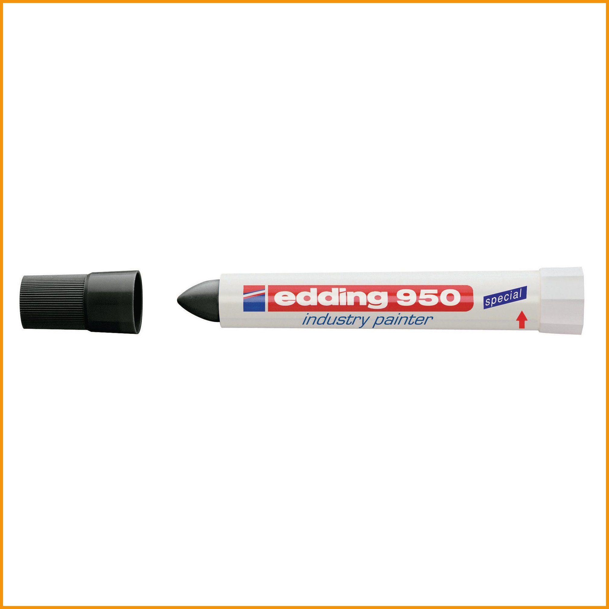 Musta rasvakynä Edding 950 pyöreä on lähes kaikille materiaaleille sopiva pysyvään merkitsemiseen tarkoitettu maalitussi. Maali on vedenkestävää ja kulutustakestävää.