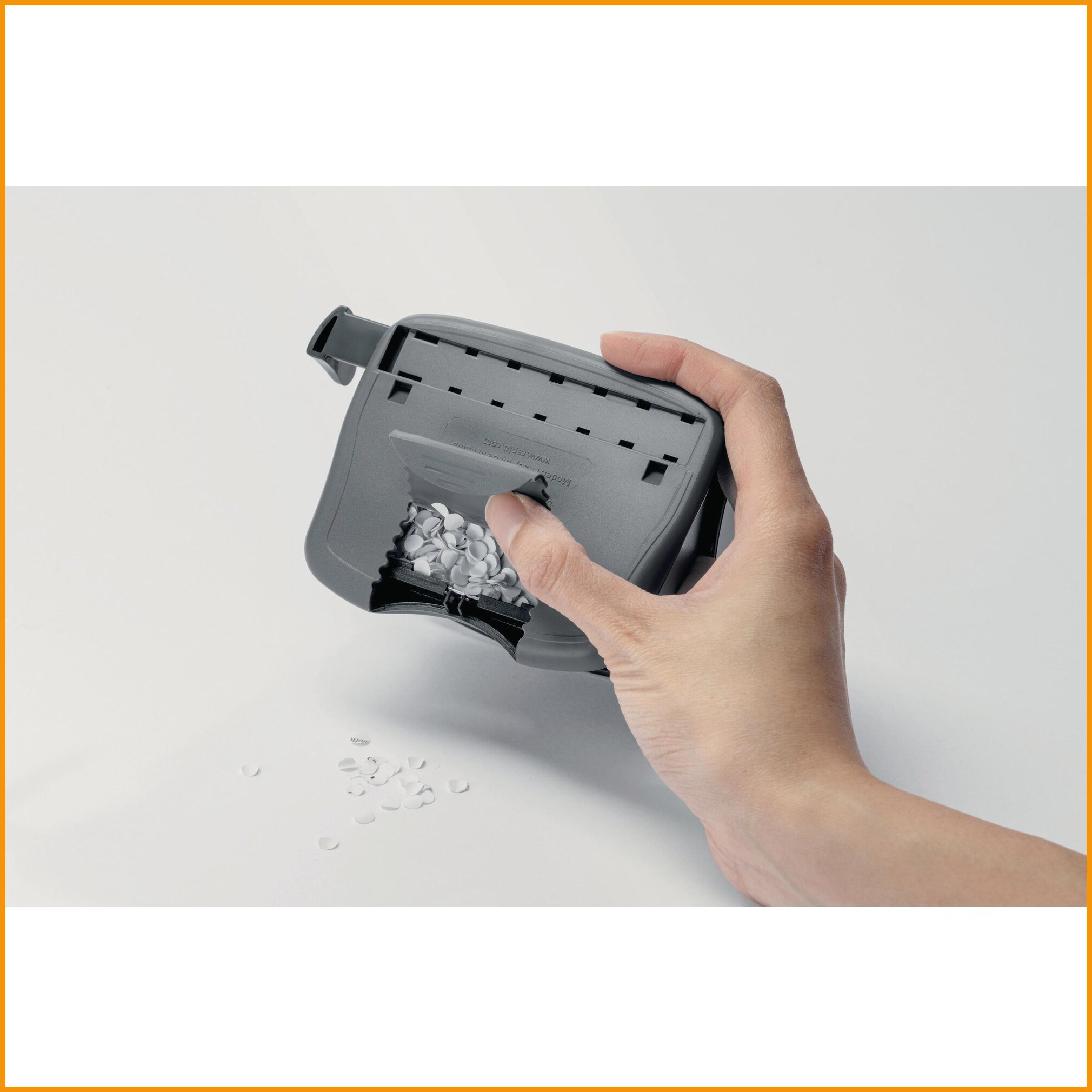 Pienikokoisessa rapid eco -lävistäjässä on ergonominen muotoilu ja näppärä paperinohjain. lävistäjän runko on valmistettu 100- prosenttisesti kierrätetystä muovista. se sopii siis vaativallekin kierrättäjälle. lävistyskapasiteetti: 20 arkkia.