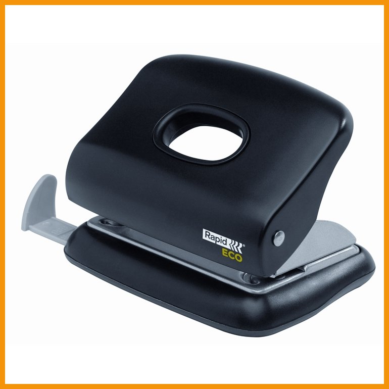 Rapid Eco Office on 74-prosenttisesti kierrätysmuovista valmistettu lävistäjä tukevalla metallirungolla ja vahvistetulla kahvalla. Integroitu roska-astia on helppo tyhjentää.Mitat: 25 x 75 x 90 mm