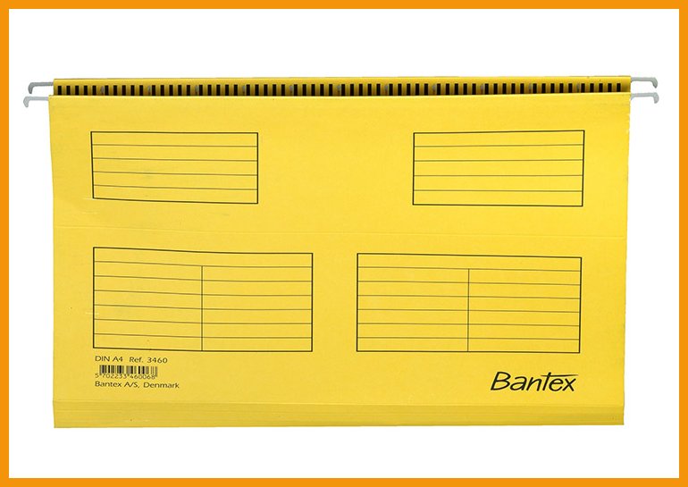 Bantex-riippukansion etupuolella on valmiiksi painetut kirjoitusalueet merkinnän ja arkistoinnin helpottamiseksi. Orsi on valmistettu muovipinnoitetusta teräksestä, joka liukuu vaivattomasti ja äänettömästi. Itse kansio on Blue Angel -ympäristösertifioitua, kierrätettyä ja happovapaata kartonkia. Pakkauksessa on mukana myös etiketit ja kirkkaat etiketinpidikkeet.Koko: A4