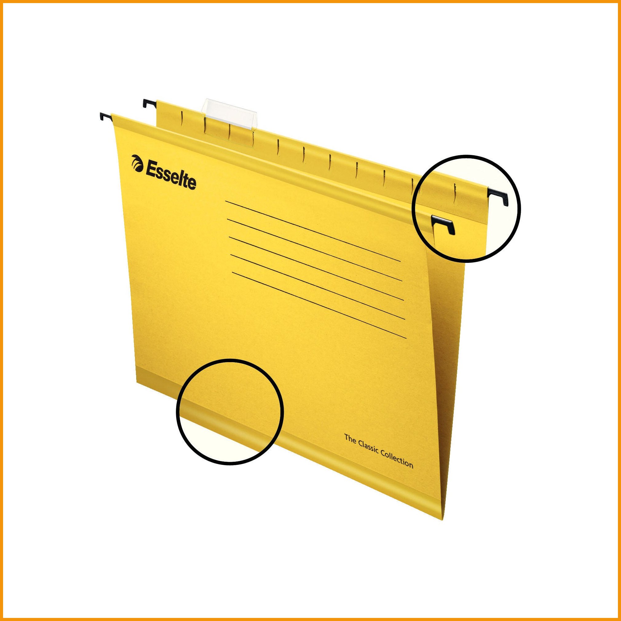 Hinta 0,94€ / kplLaadukas esselte-riippukansio on nyt entistäkin vahvempi pohjassa ja yläreunassa olevan vahvistusnauhan ansiosta. riippukansio on valmistettu kierrätetystä 210 g kartongista. kansiossa on kirkas, muovinen etiketinpidin sekä valkoinen etiketti. kansion orsi on metallia. hankkimalla ...