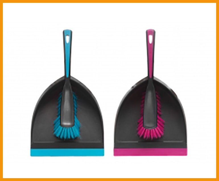 Saima-setissä on rikkaharja ja -lapio.Väri: sininen/harmaa tai pinkki/harmaa.